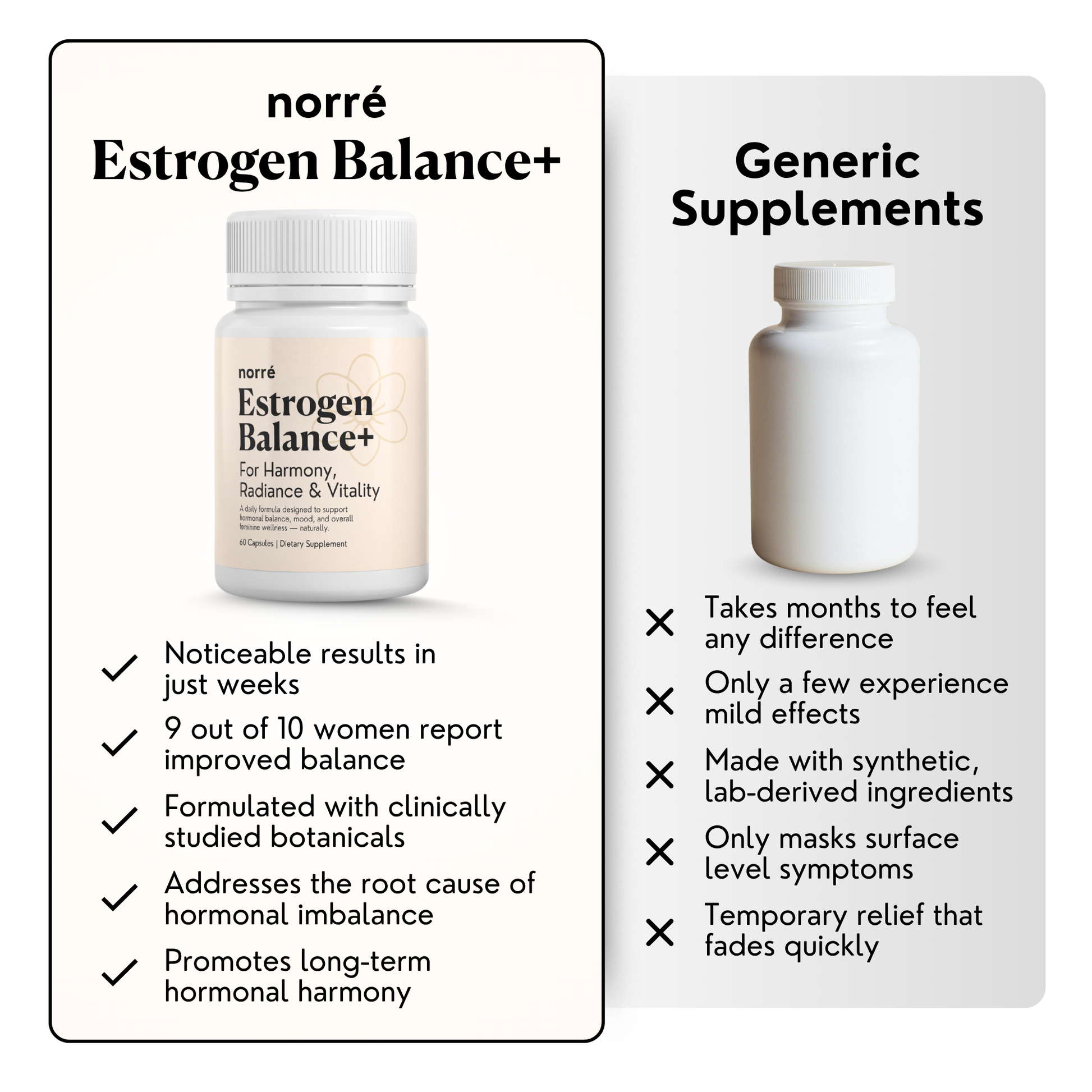 Estrogen and progesterone are the most vital hormones for women, and nourishing them with Norré Labs helps you reclaim your glow, your fire, and your feminine power.